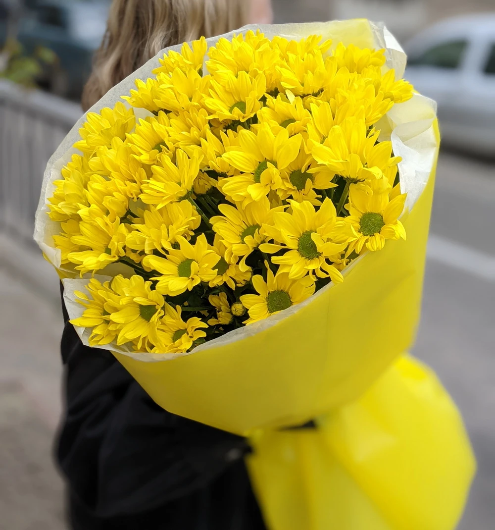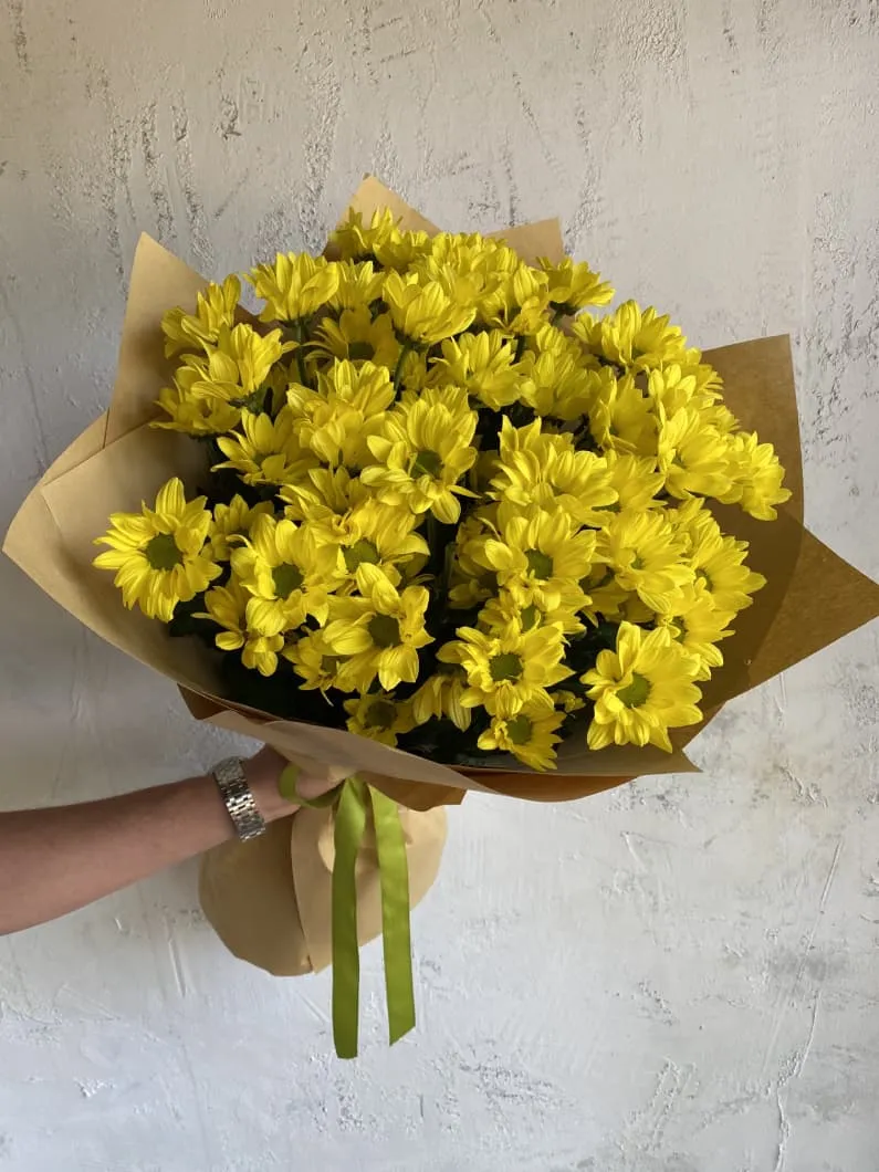 Головна / Квіти / Квіти / Хризантеми / Букет із 15 жовтих хризантем