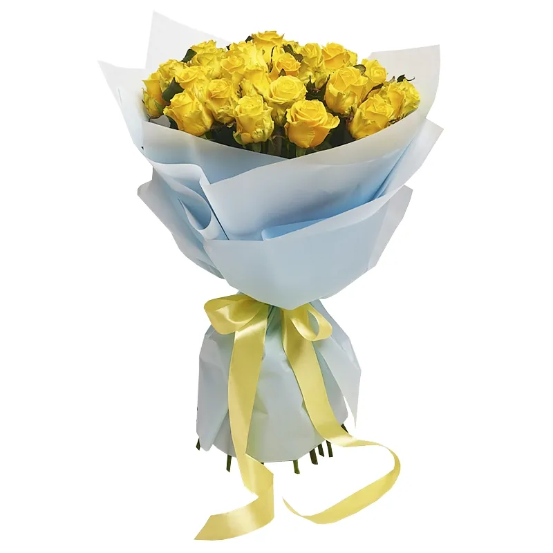 Букет із 21 жовтої троянди «Сонячний оксамит»