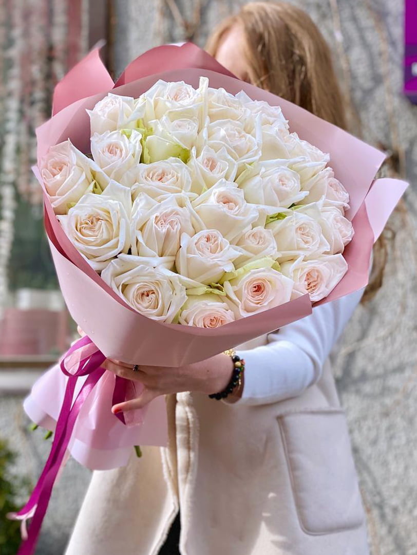 Головна / Квіти / Троянди / Білі троянди / Букет із 21 півонієподібної троянди White OHara