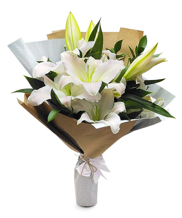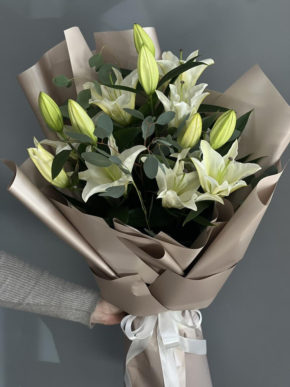 Головна / Квіти / Квіти / Лілії / Букет із 3 білих лілій “Аделін”