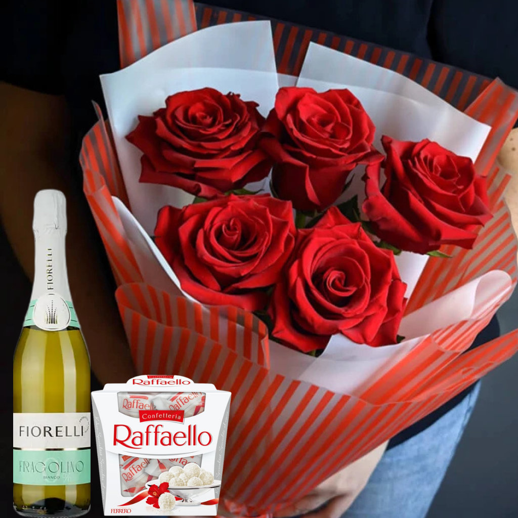 5 червоних троянд сорту Гран Прі або Престиж