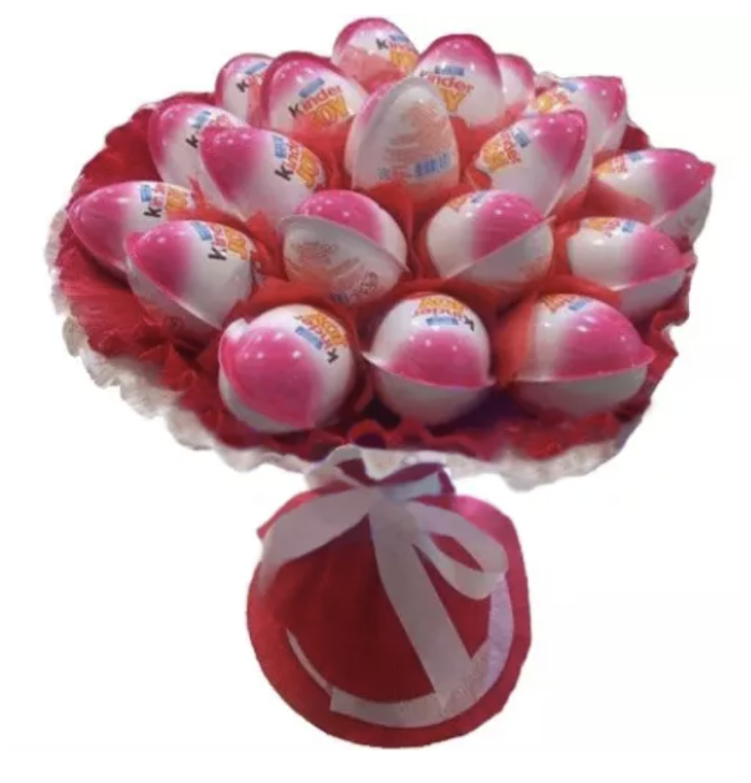 Головна / Квіти / Квіти / Святкові новорічні букети / Букет із 15 кіндер сюрпризів