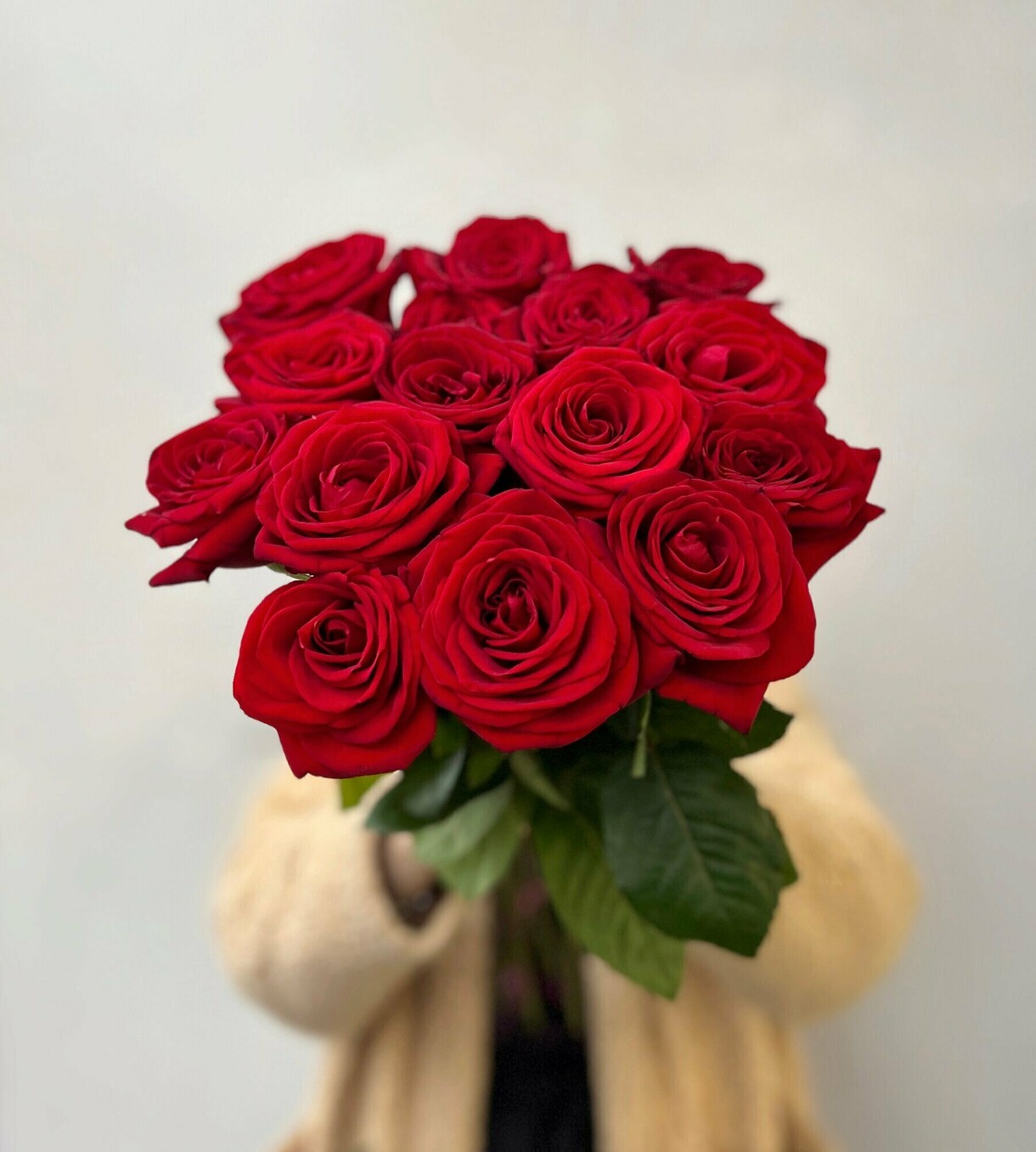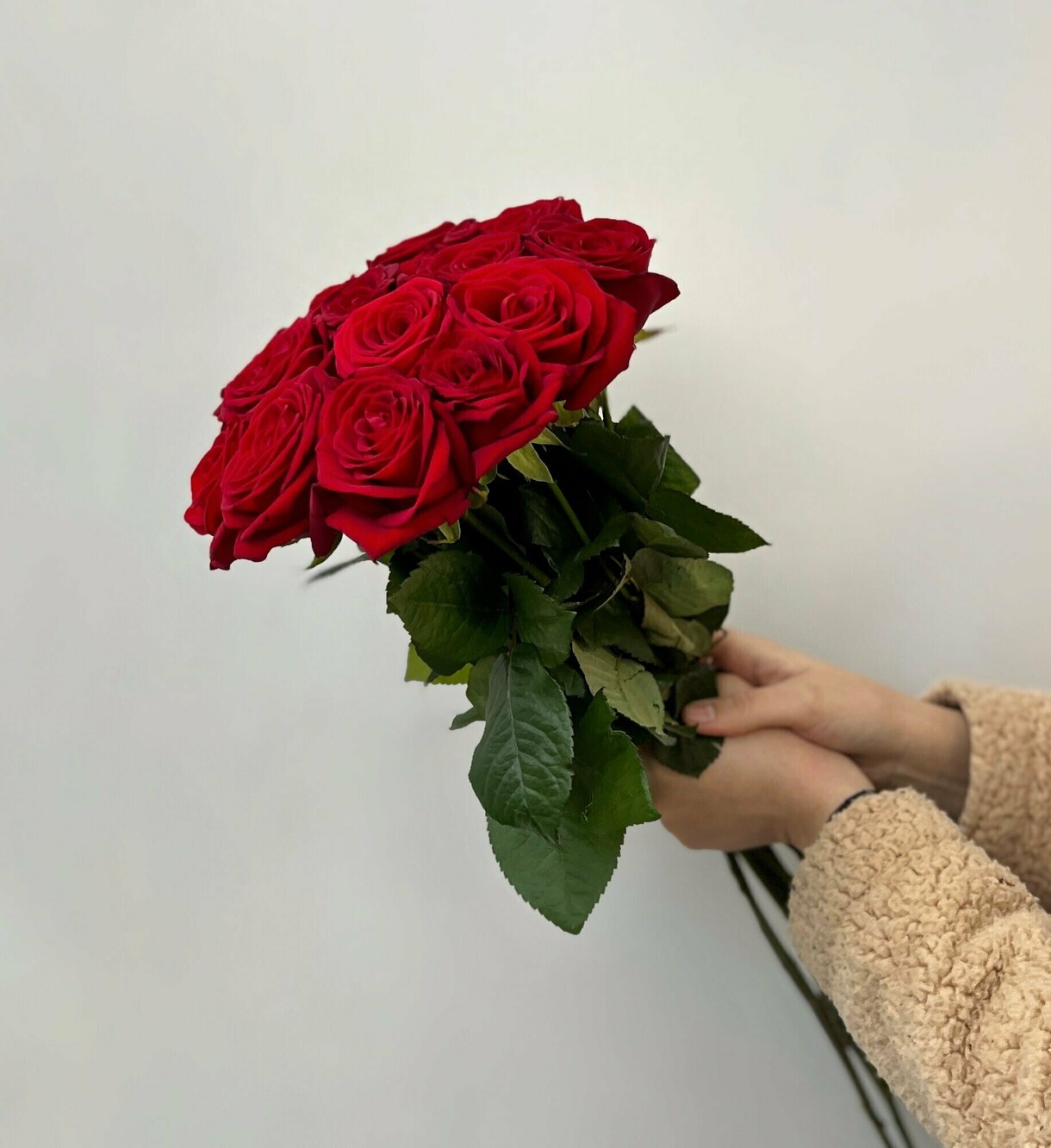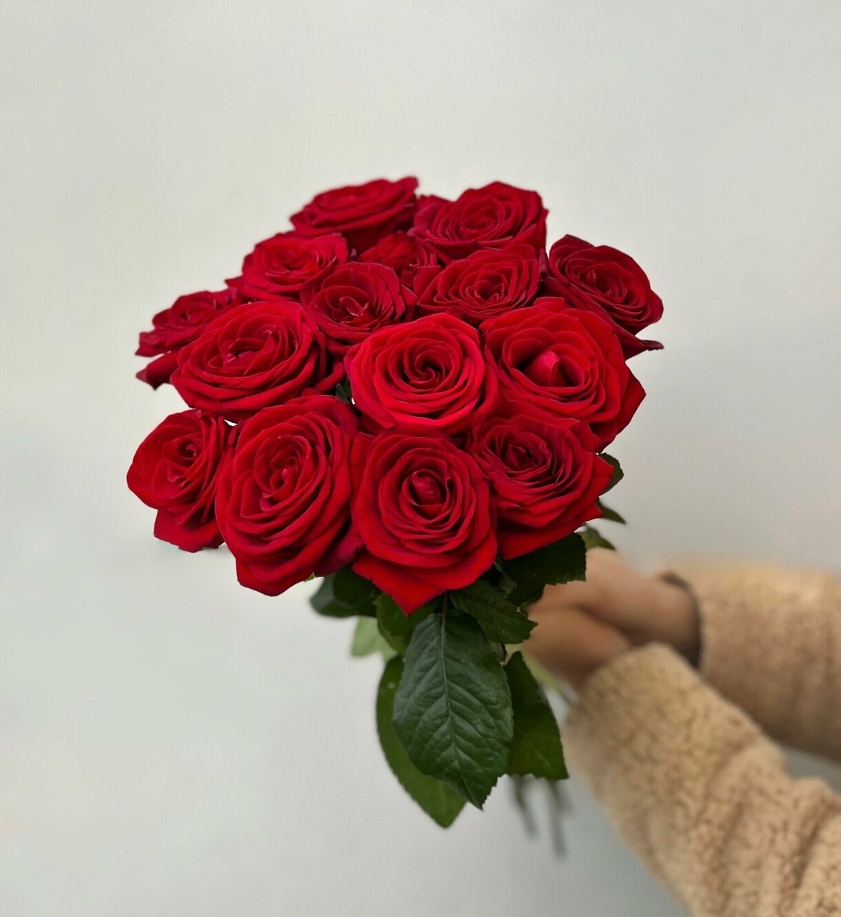 15 червоних троянд сорту Гран Прі або Престиж (50-60 см)