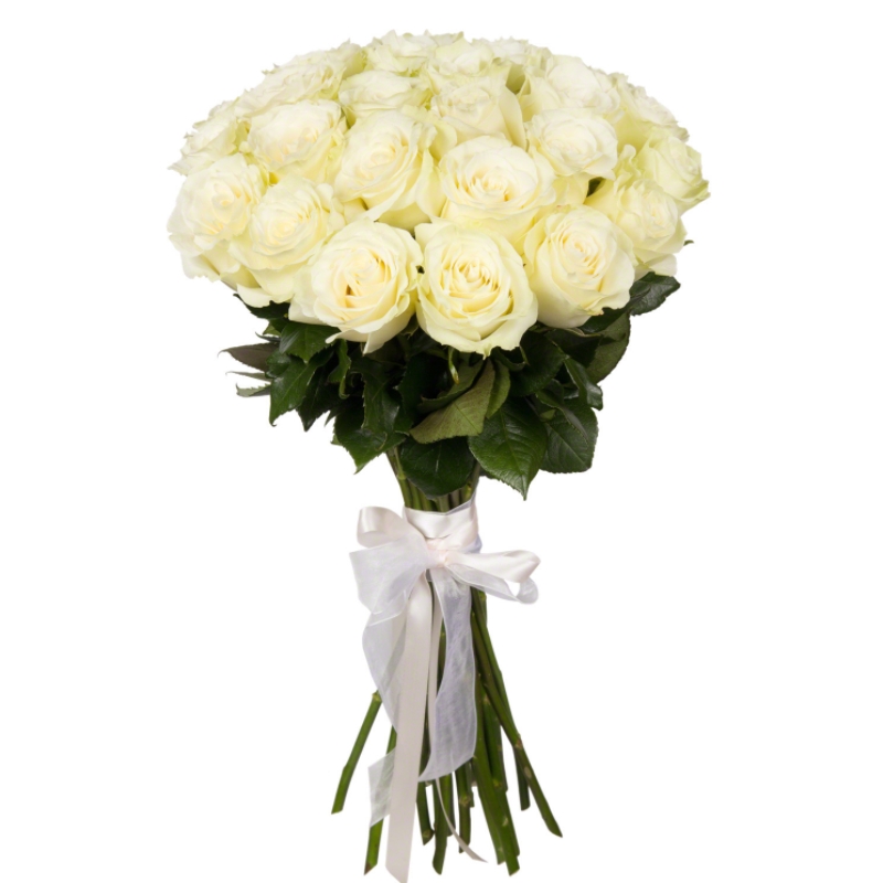 25 білих троянд сорту Мондіаль (80 см)