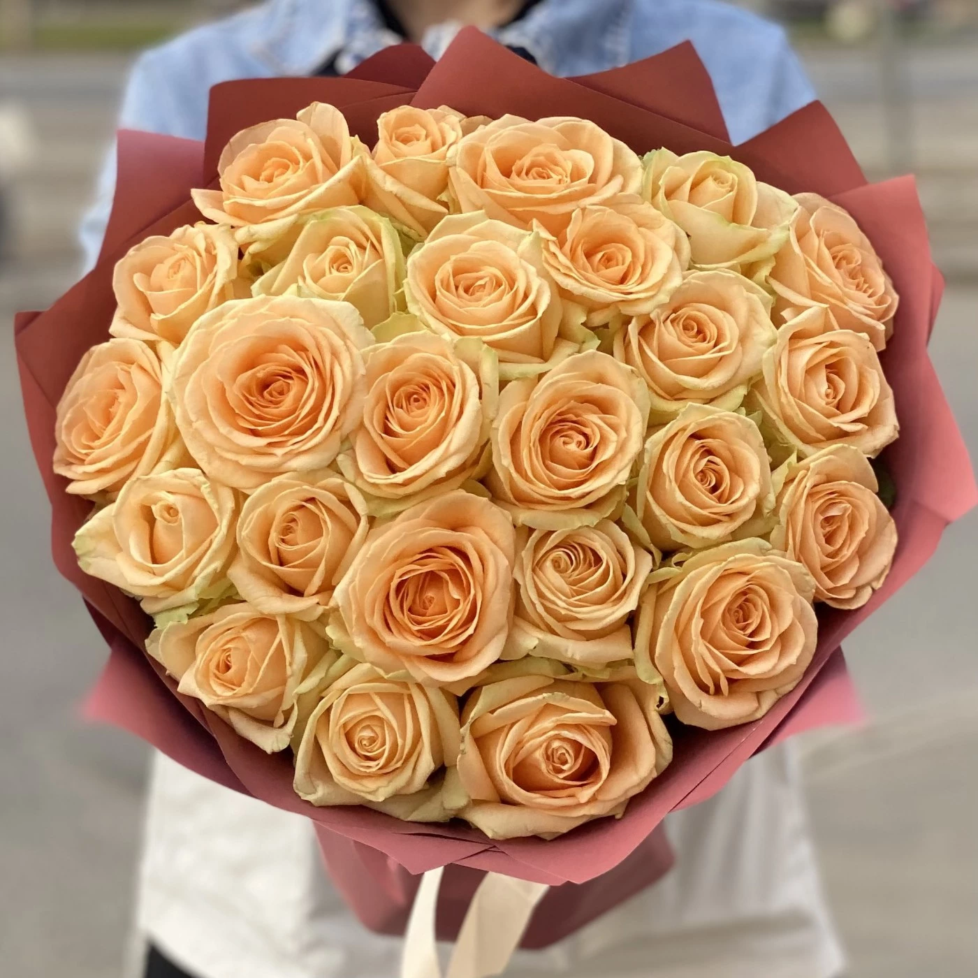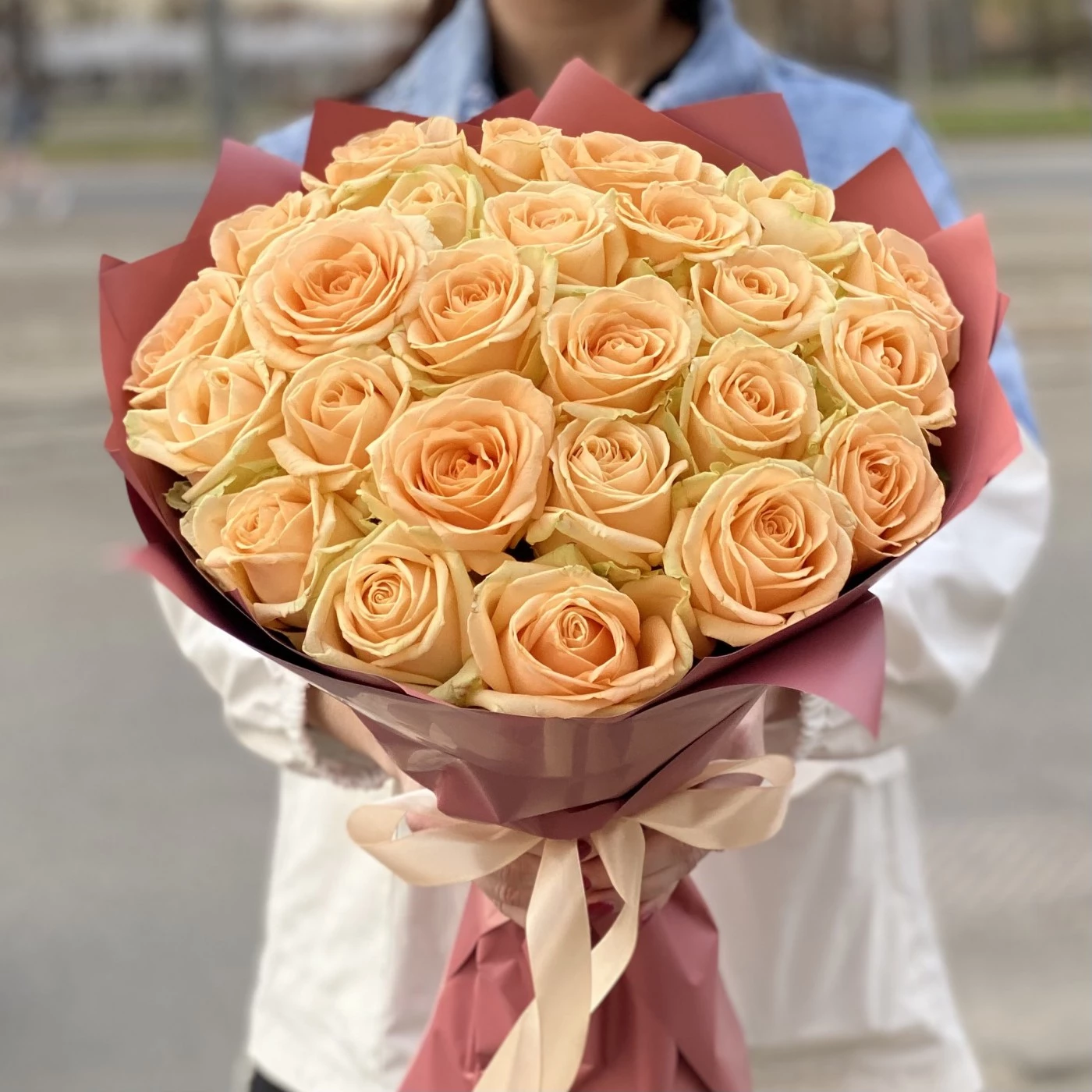 25 кремових троянд сорту Піч Аваланч (60 см)