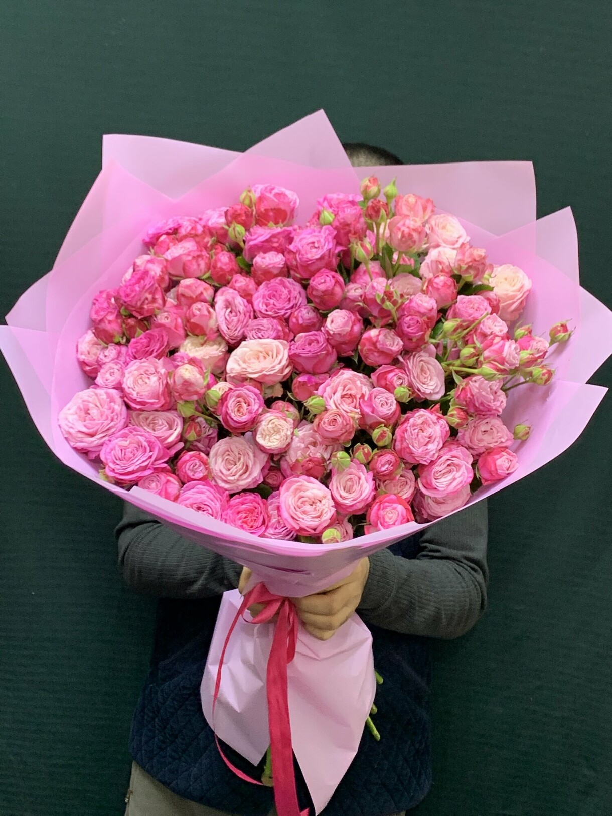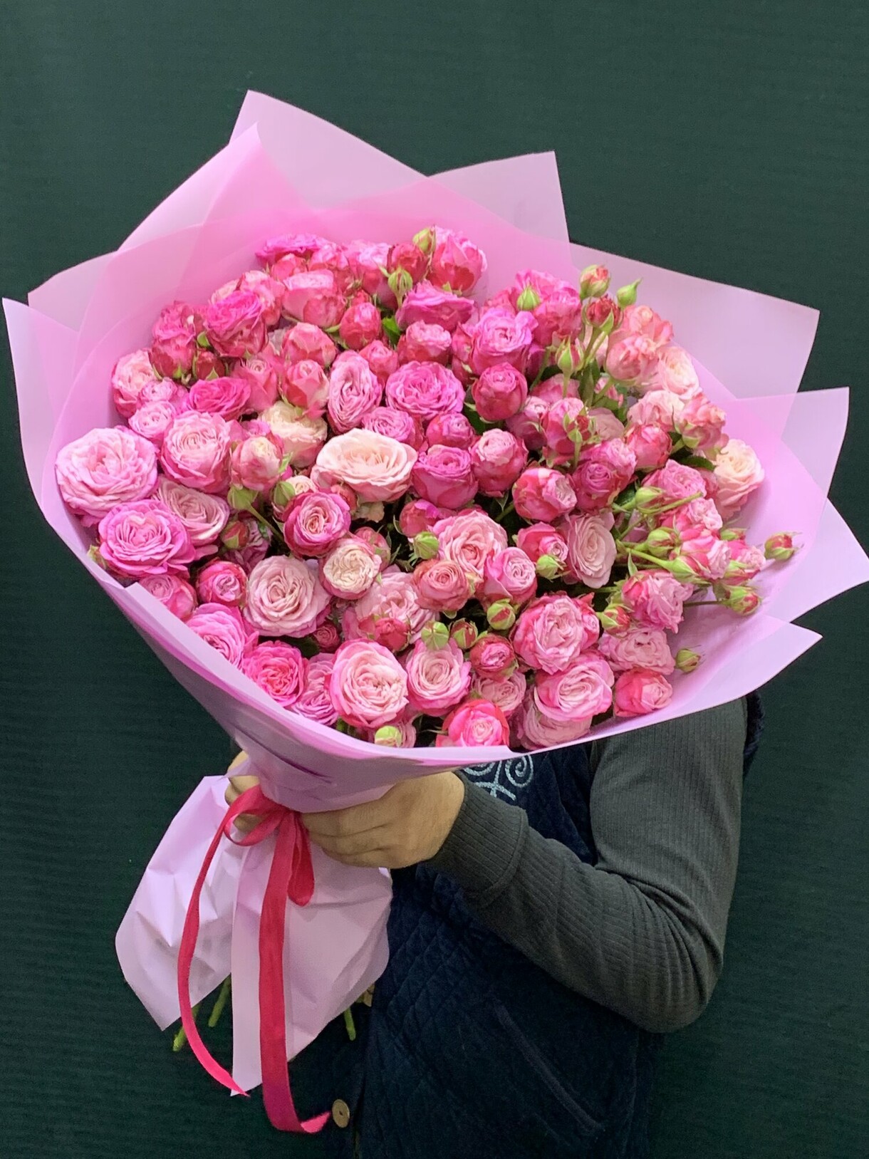 Головна / Квіти / Троянди / Рожеві троянди / Букет із 25 рожевих півонієподібних троянд