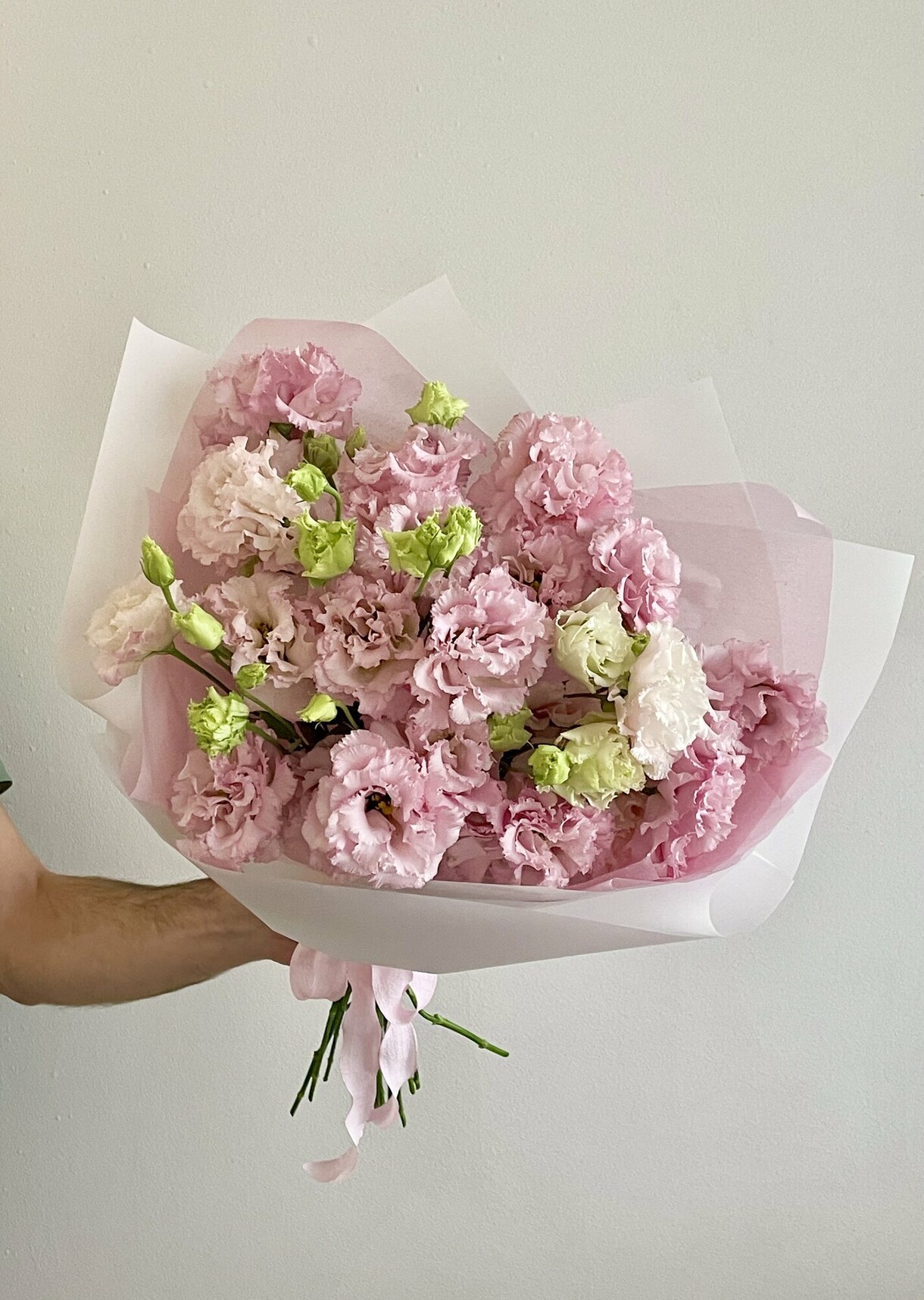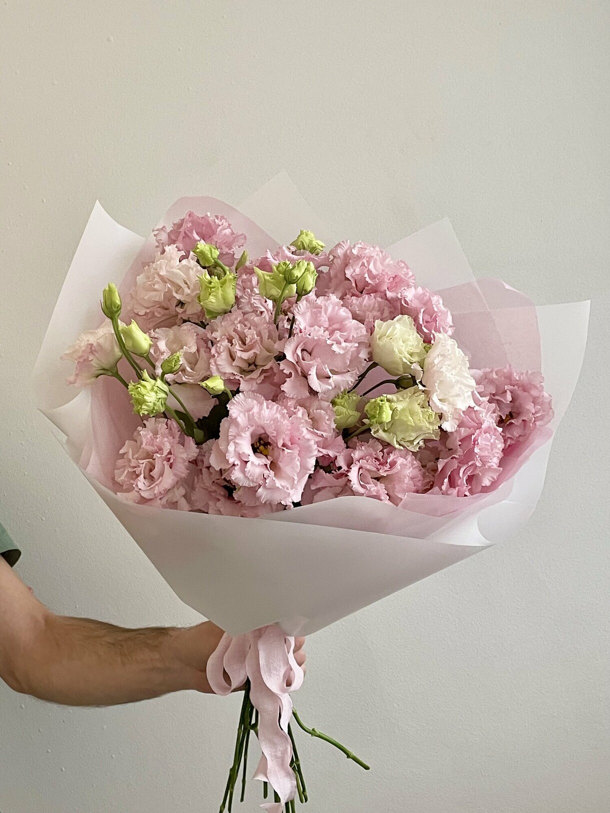 5 рожевих махрових еустом