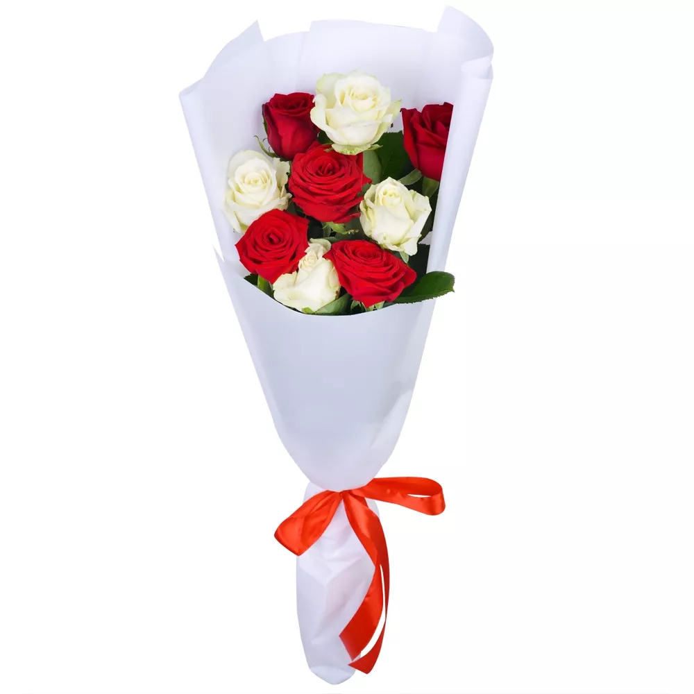 Головна / Квіти / Троянди / Червоні троянди / Букет із 9 троянд міксом з евкаліптом