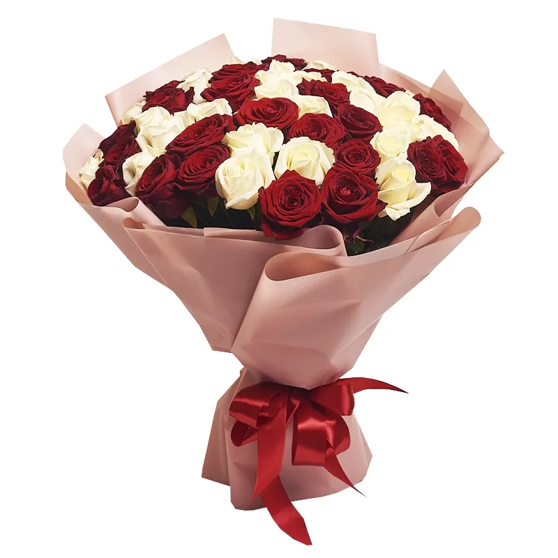 Головна / Квіти / Троянди / Червоні троянди / Букет із 51 червоної і білої троянди
