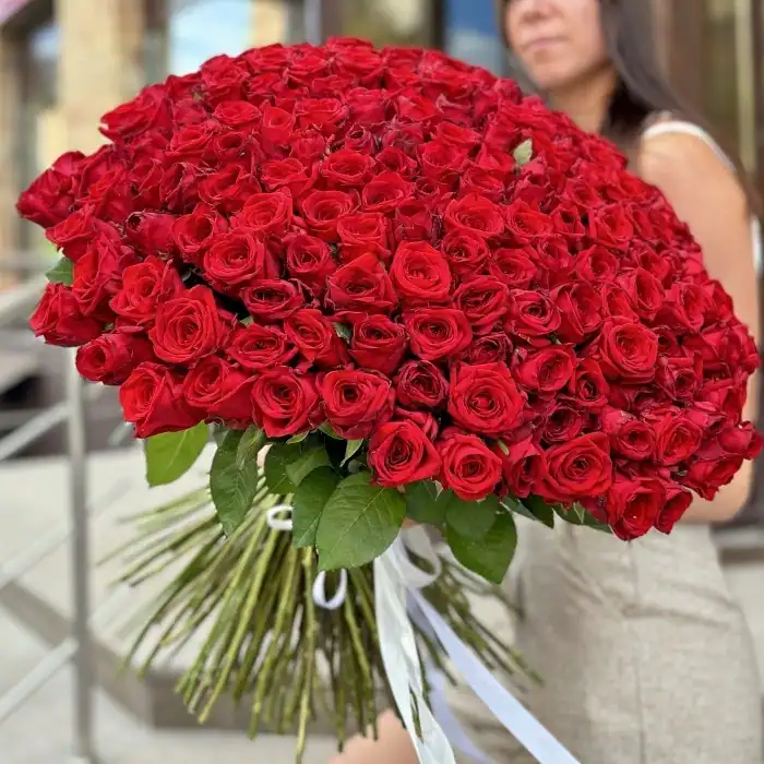 201 червоних троянд сорту Престиж або ГранПрі (60 см)