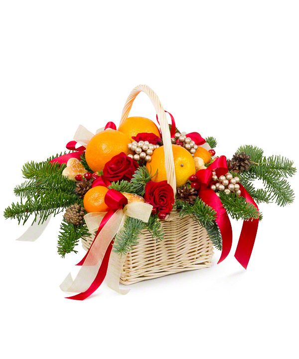 Головна / Квіти / Квіти / Святкові новорічні букети / Новорічний презент в кошику
