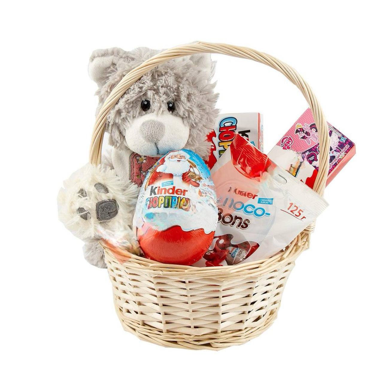 Головна / Квіти / Солодкі подарунки / Фруктові та солодкі кошики / Подарункова корзинка Кіндер Сюрприз