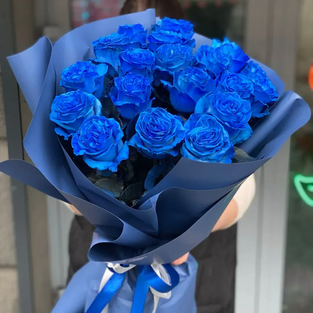 Головна / Квіти / Троянди / Сині троянди / Букет із 15 синіх троянд
