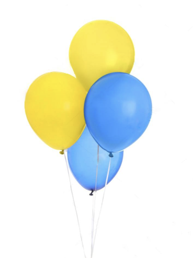 4 латексні гелеві кульки ( 2 жовті, 2 сині)