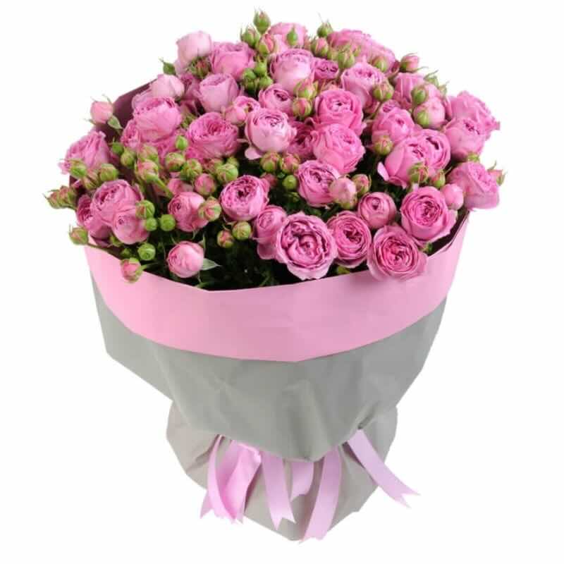 15 гілок рожевої півонієподібної кущової трояндис сорту Місті Бамблз