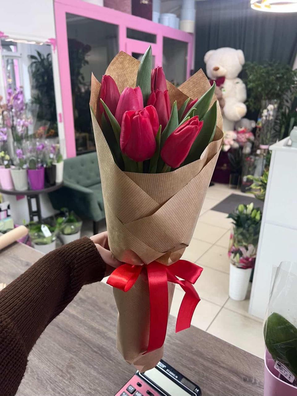 • 7 червоних тюльпанів