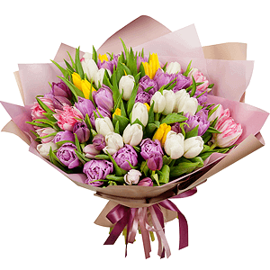 Головна / Квіти / Квіти / Тюльпани / Букет із 75 різнокольорових тюльпанів