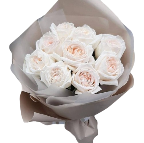 Головна / Квіти / Троянди / Білі троянди / Букет із 9 півонієподібних троянд Вайт Охара