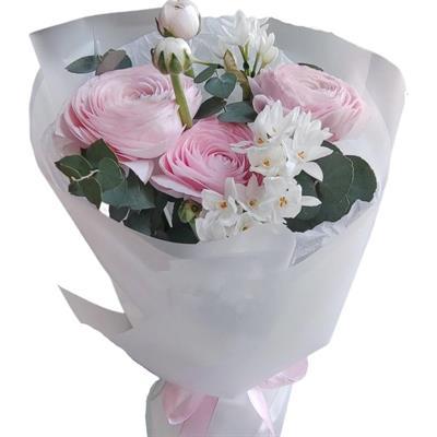 Головна / Квіти / Квіти / Ранункулюси / Букет з ранункулюсів та нарцисів