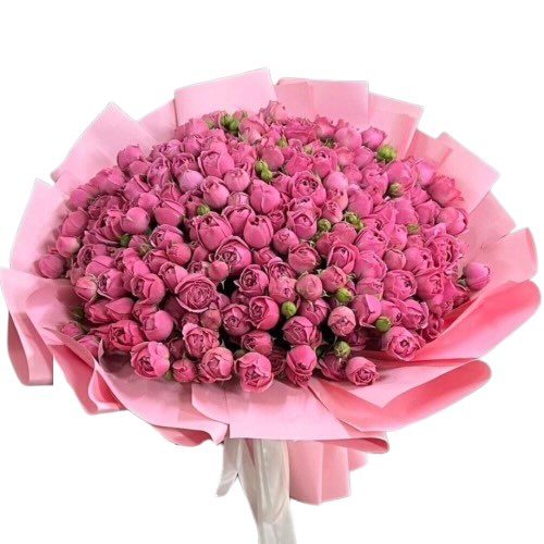 101 рожева півонієподібна троянда сорту Місті Бамблз