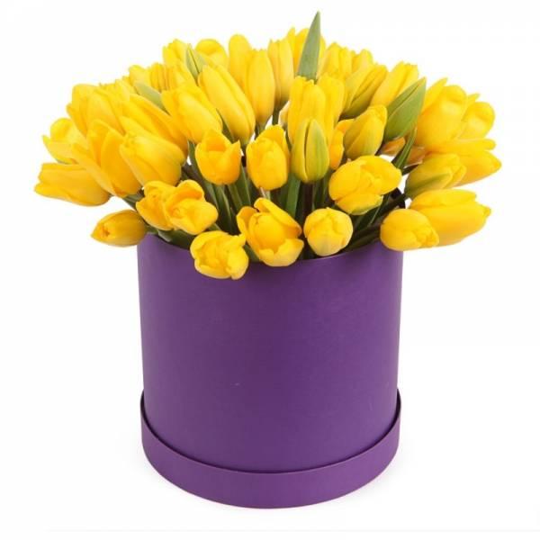 Головна / Квіти / Композиції / Квіти в коробці / Композиція із 35 жовтих тюльпанів в коробці