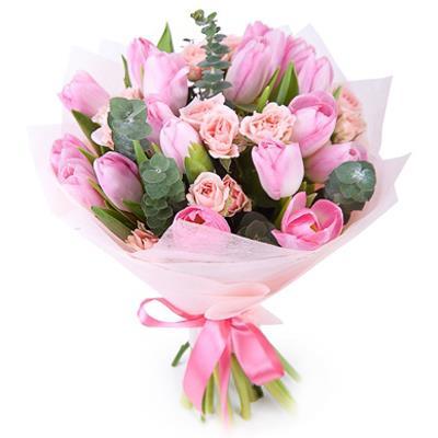 Головна / Квіти / Квіти / Тюльпани / Букет із тюльпанів і троянд