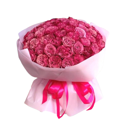 Головна / Квіти / Троянди / Рожеві троянди / Вишуканий букет із 51 півонієподібної троянди сорту Кантрі Блюз